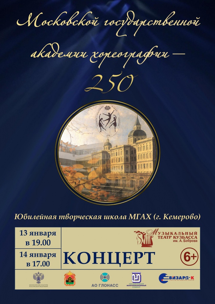 В рамках юбилейных мероприятий, посвященных празднованию 250-летия Московской государственной академии хореографии, в городе Кемерове с 10 по 15 января 2023 года пройдет Творческая школа МГАХ.