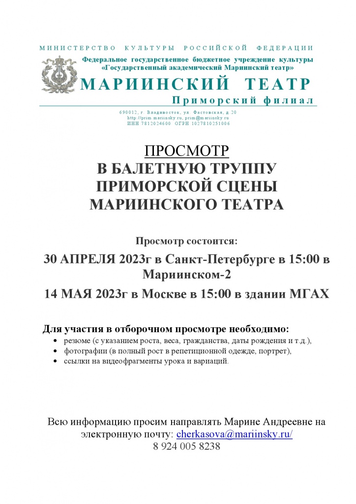 Просмотр в балетную труппу приморской сцены мариинского театра