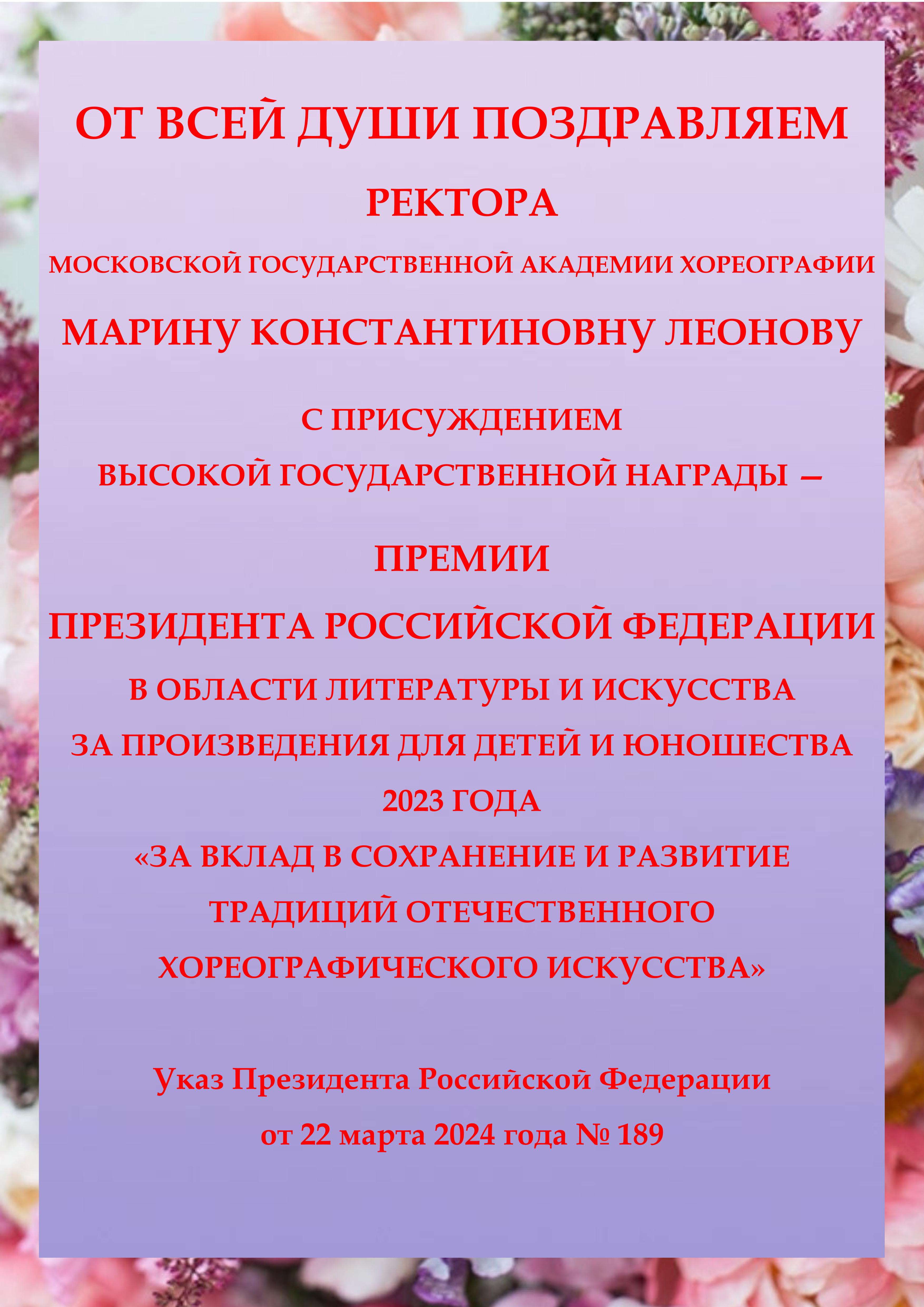 Ректор МГАХ Марина Константиновна Леонова удостоена высокой государственной награды
