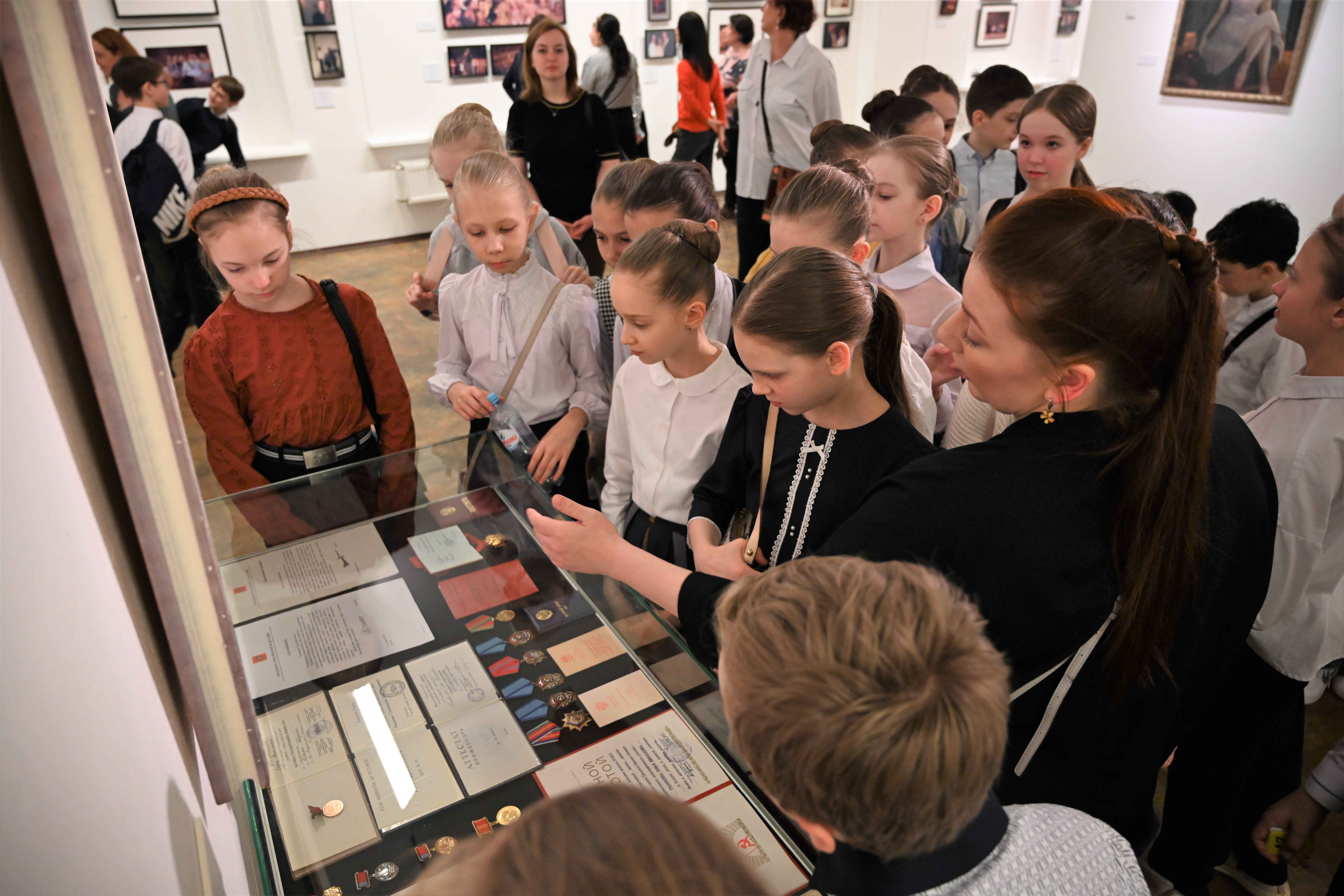 Для учащихся была проведена экскурсия по выставке, на которой собраны десятки фотографий, документов и наград из семейного архива Софьи Николаевны.