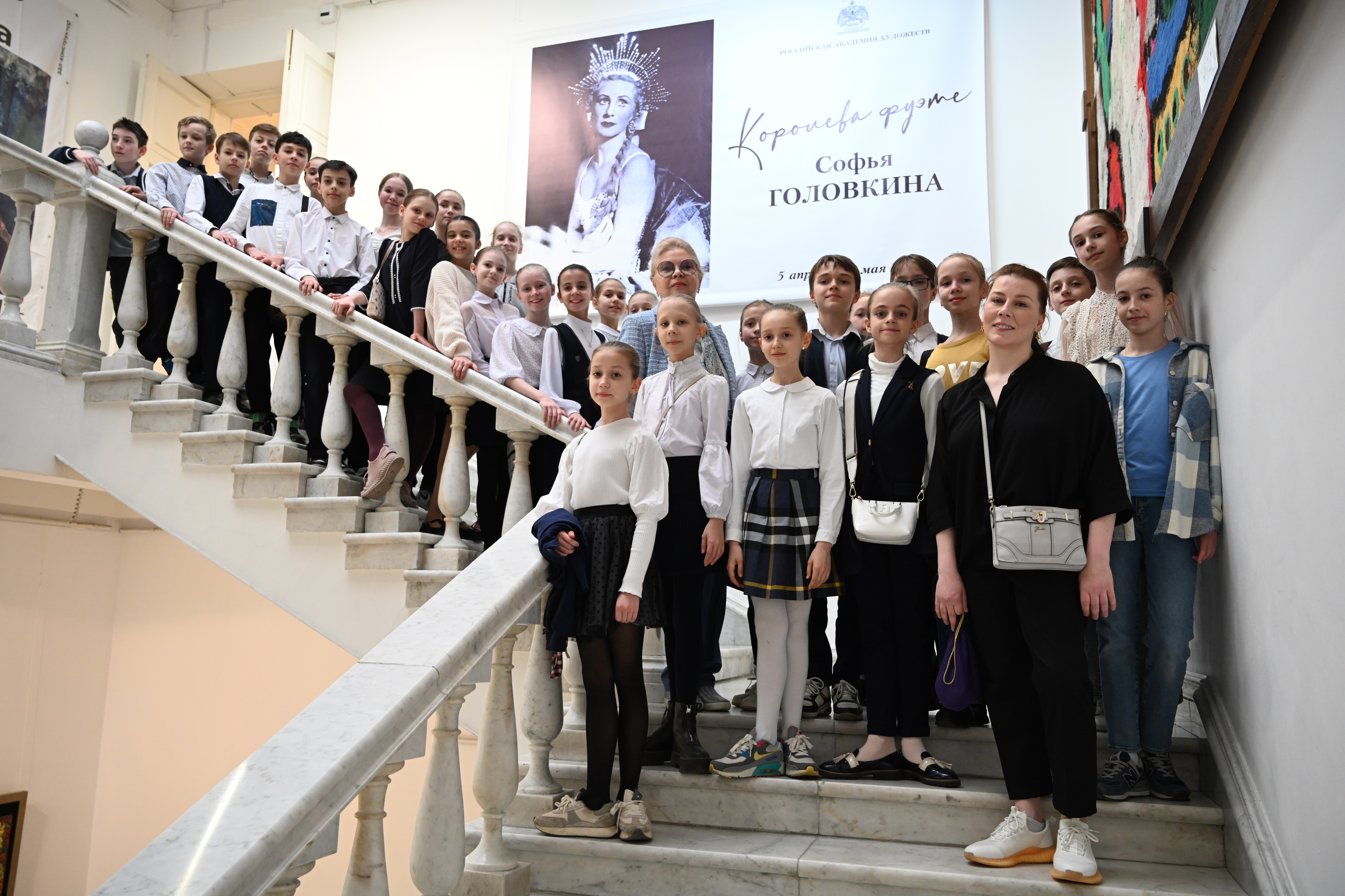 21 апреля 2023 года ректор Московской государственной академии хореографии Леонова Марина Константиновна и учащиеся МГАХ посетили выставку «Софья Головкина. Королева фуэте» в Галерее искусств Зураба Церетели.