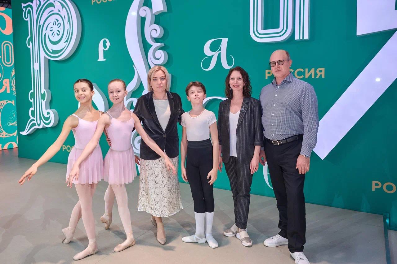 В зоне «Театр и балет» профессор Московской государственной академии хореографии Андрей Александрович Алферов рассказал об основных элементах классического танца, а учащиеся академии: Амелина Мария, Порожнякова Вероника и Цурко Арсений - продемонстрировали их у станка.