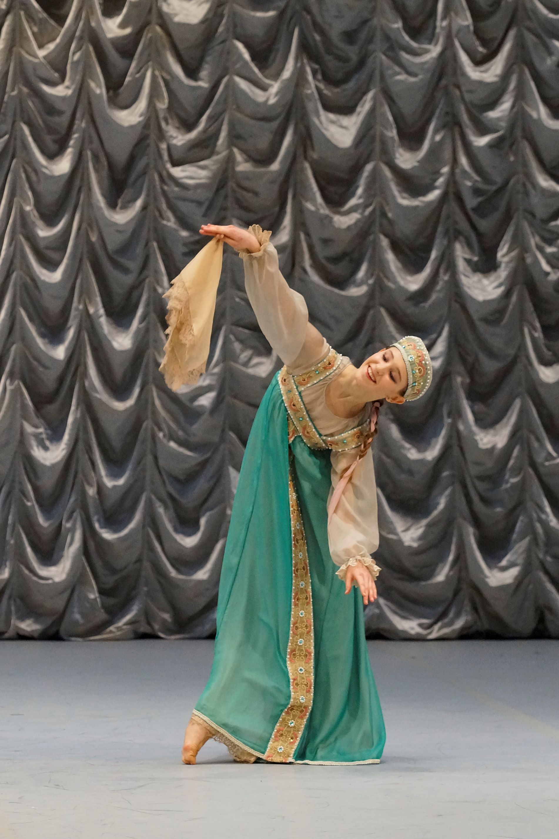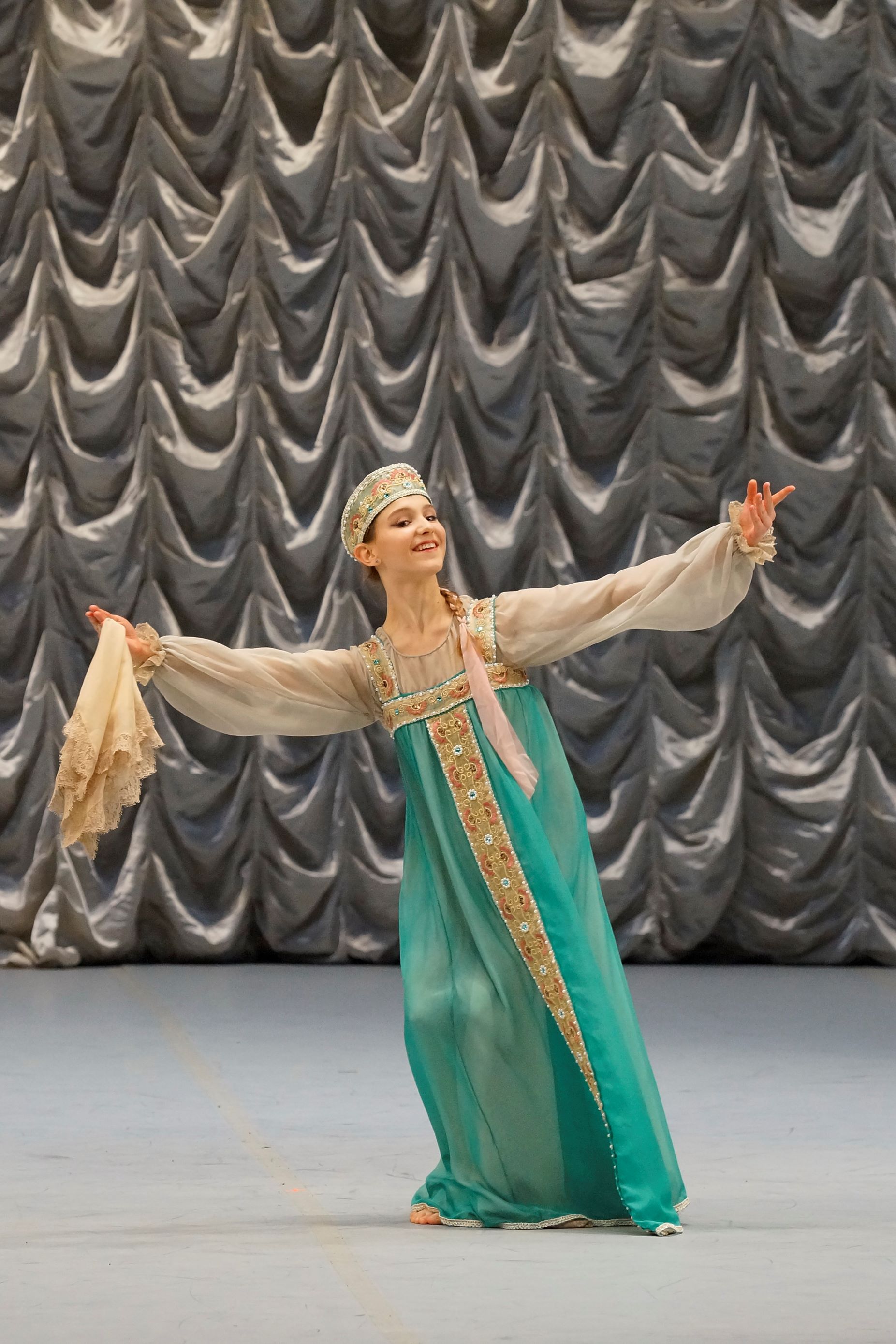 Моисеева Ева — студентка I В курса СПО МГАХ, педагог – старший преподаватель кафедры народно-сценического,