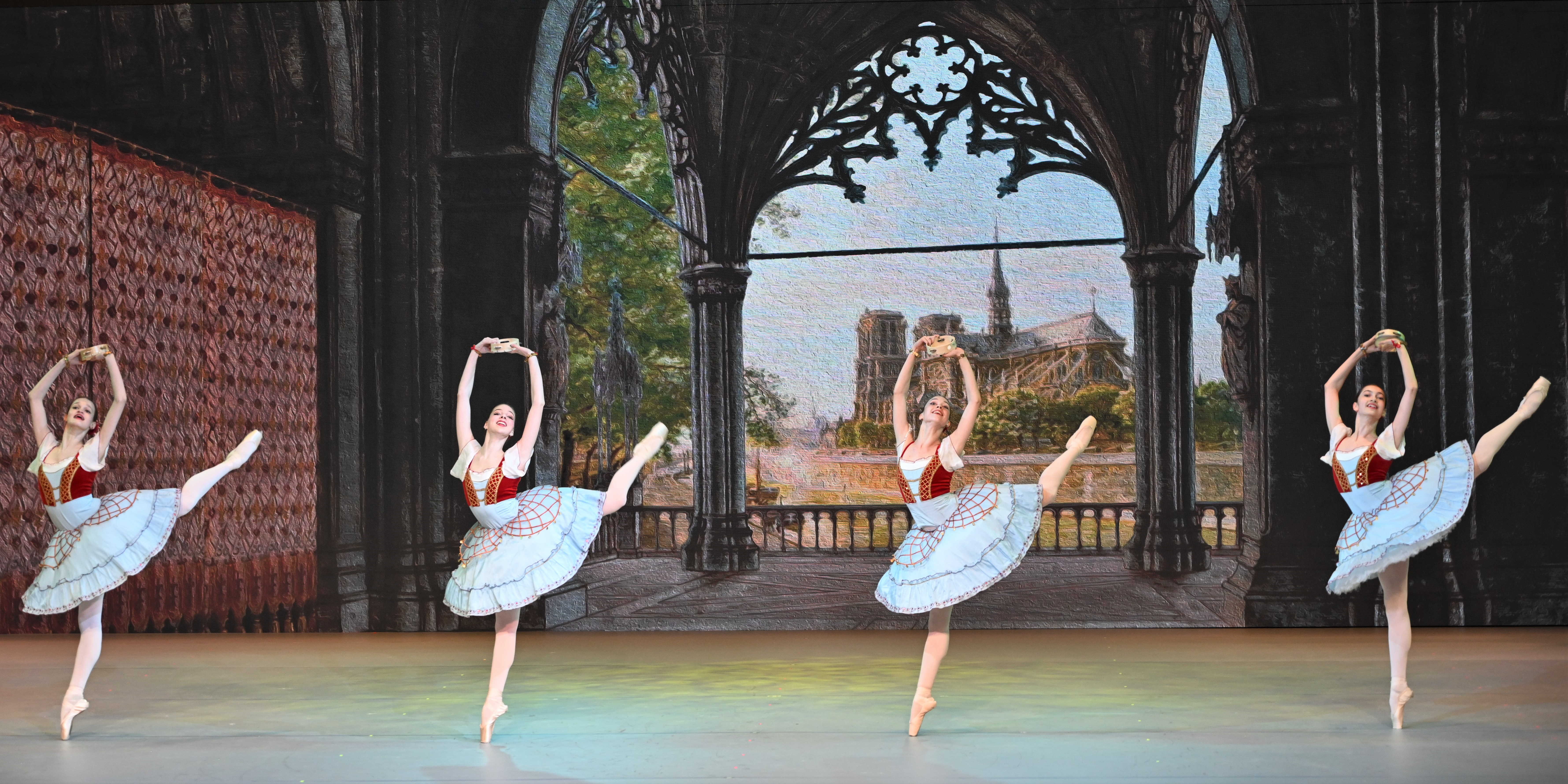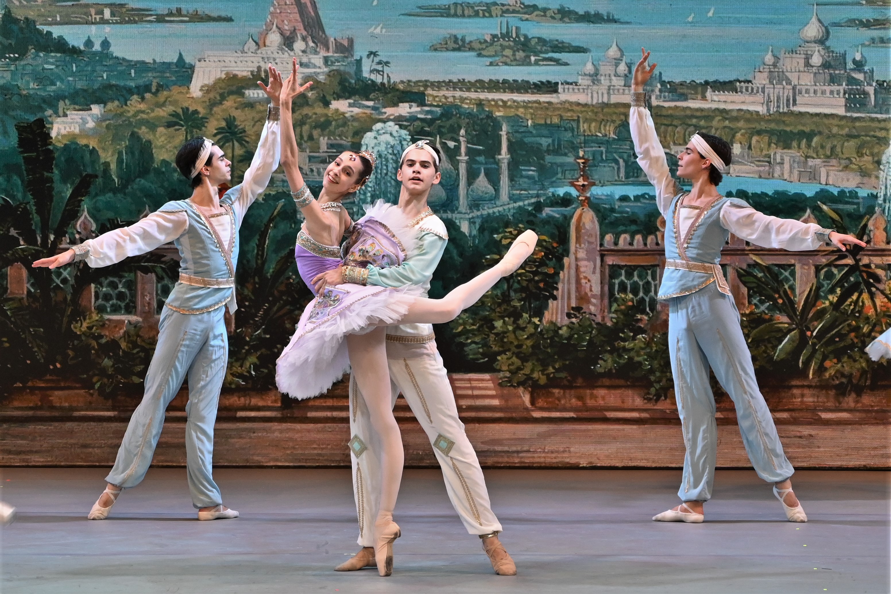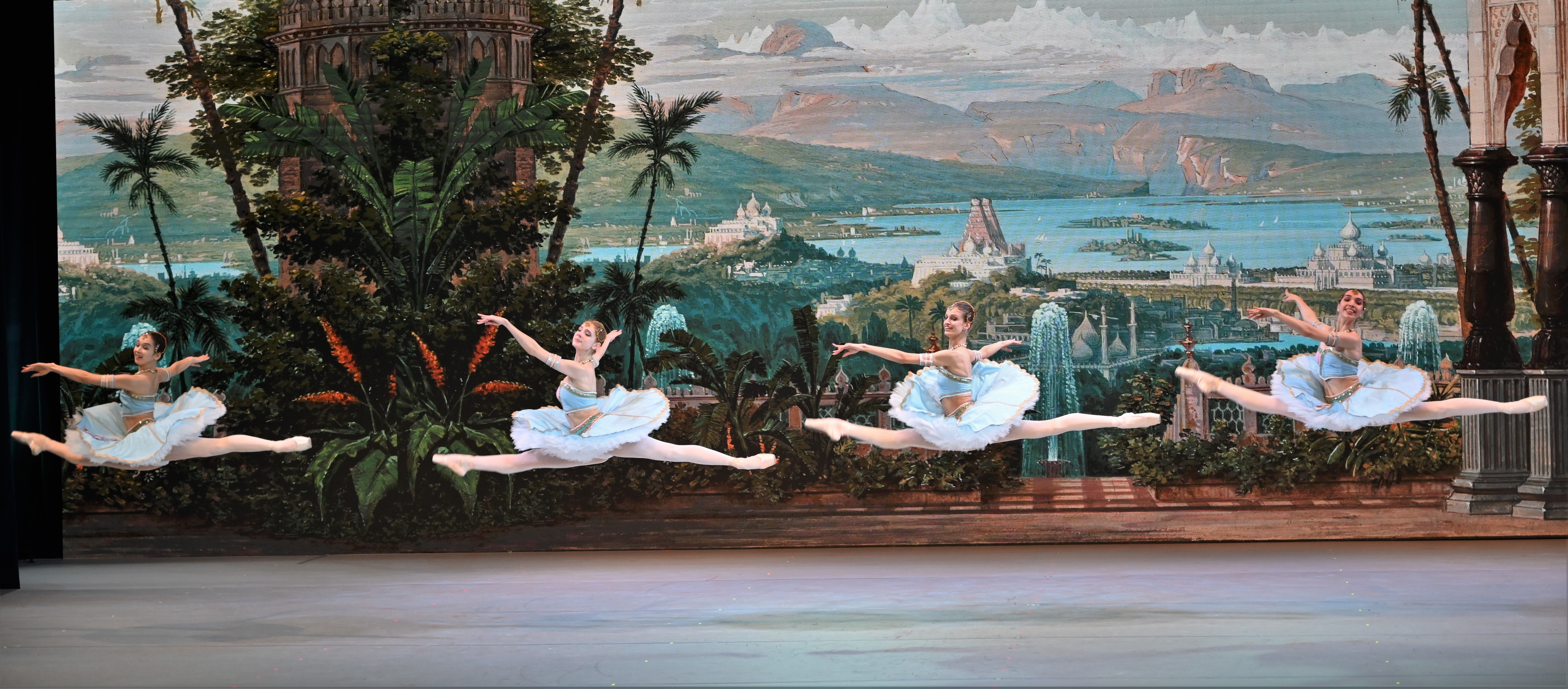 Студенты выпускных и старших курсов Академии – исполнили I часть Классической симфонии на музыку С. Прокофьева в хореографии Л. Лавровского, а также фрагменты из балетов классического наследия: «Баядерка», «Эсмеральда», «Миллионы Арлекина», «Раймонда».
