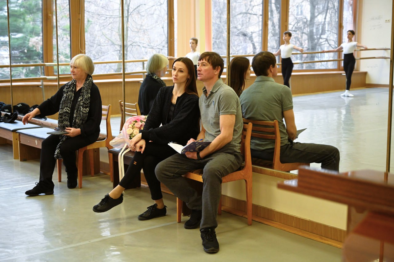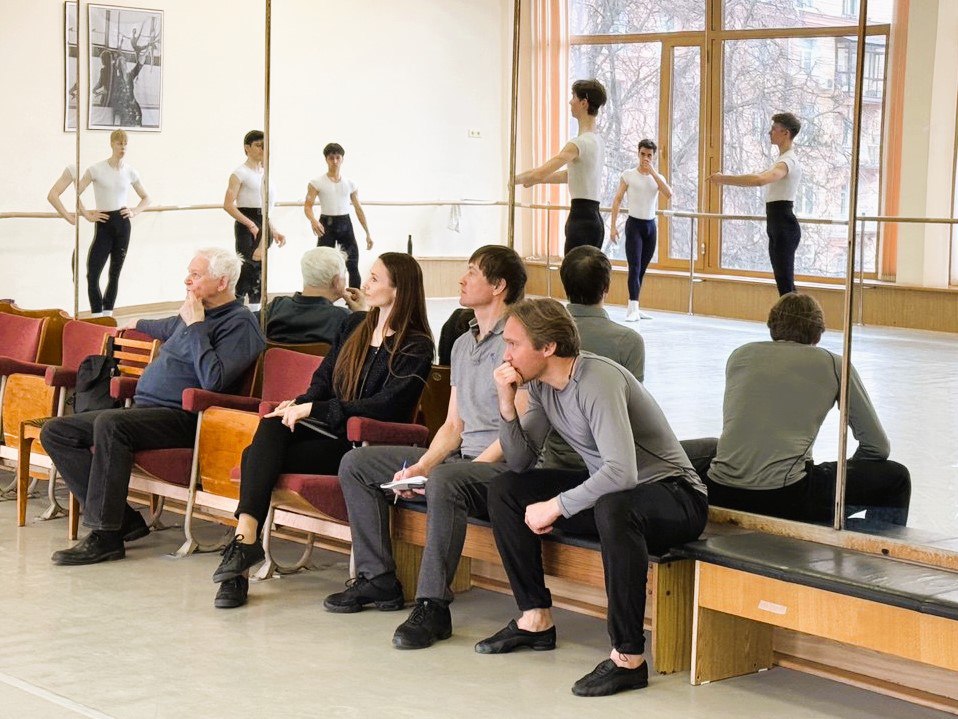 В залах Академии весь день идут просмотры учащихся и студентов для постановки «Класс-концерт» в хореографии Асафа Михайловича Мессерера, которая будет проводиться к выпускным концертам.
