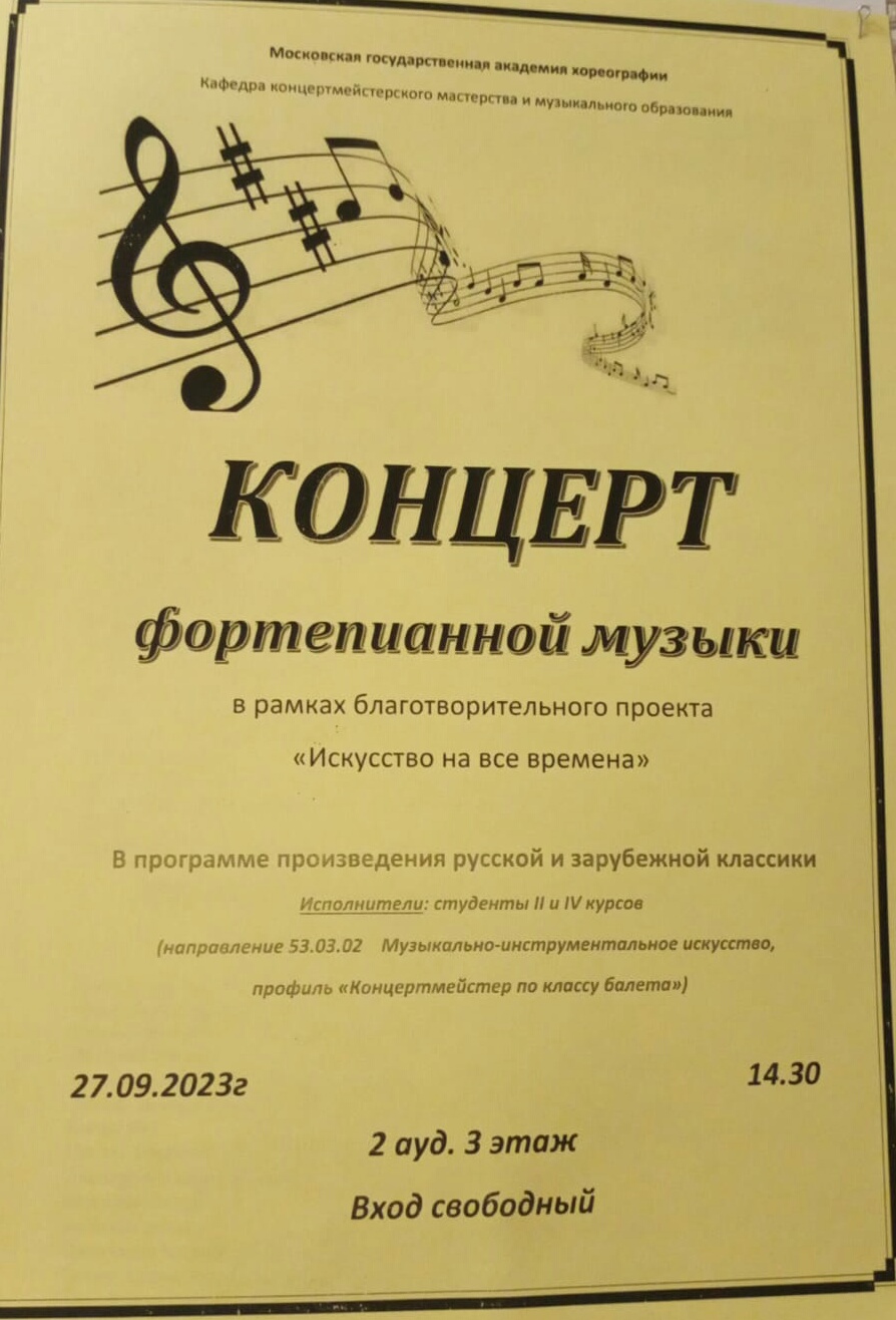 На кафедре концертмейстерского мастерства и музыкального образования прошёл благотворительный концерт в рамках проекта " Искусство на всё времена"