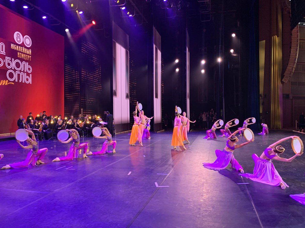 Концерт прошел на сцене Государственного Кремлевского Дворца, где наши студенты исполнили «Танец с бубнами» из балета «Любовь и смерть» на музыку Полада Бюль-бюль оглы в хореографии Этери Джафаровой.