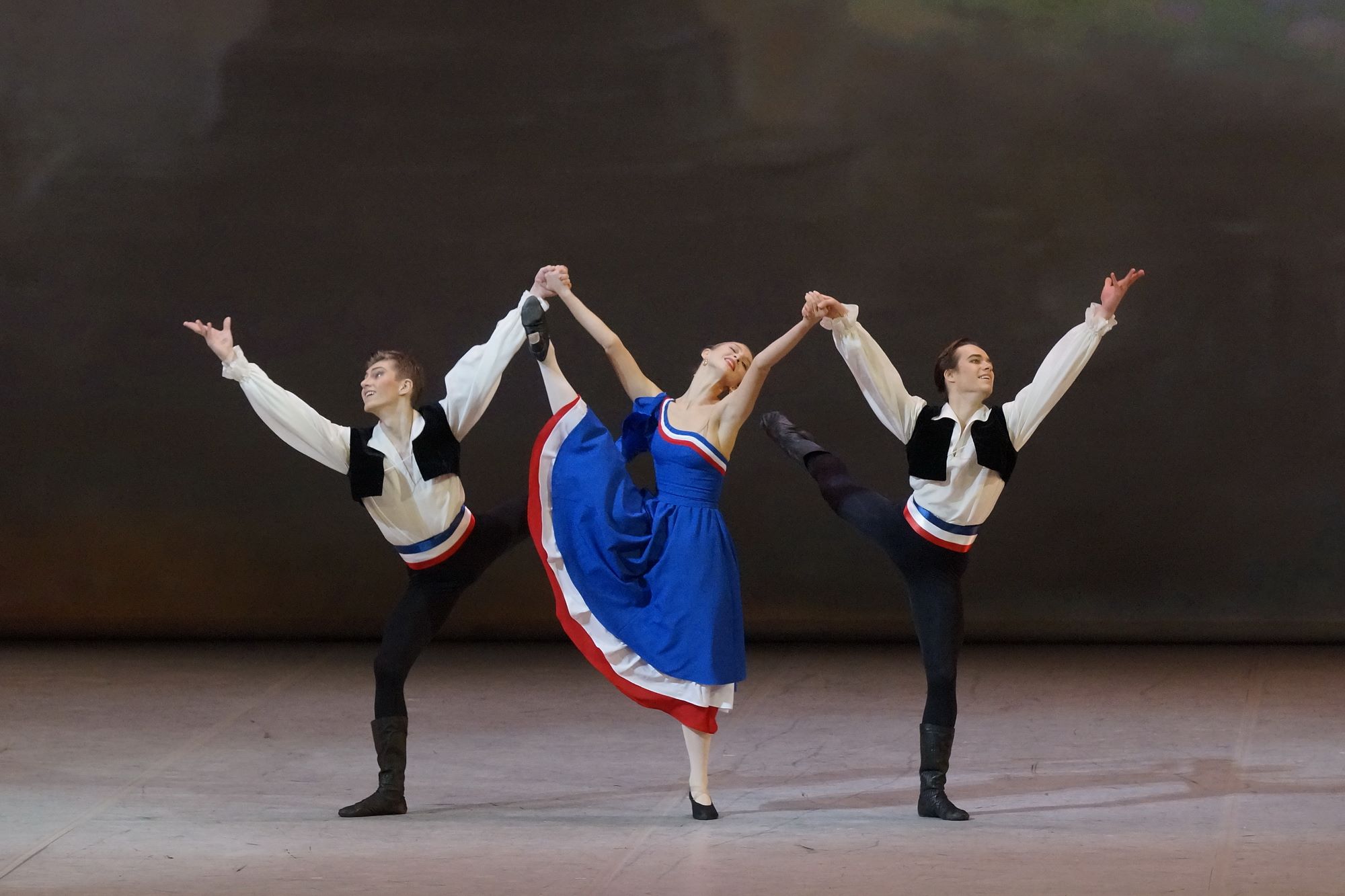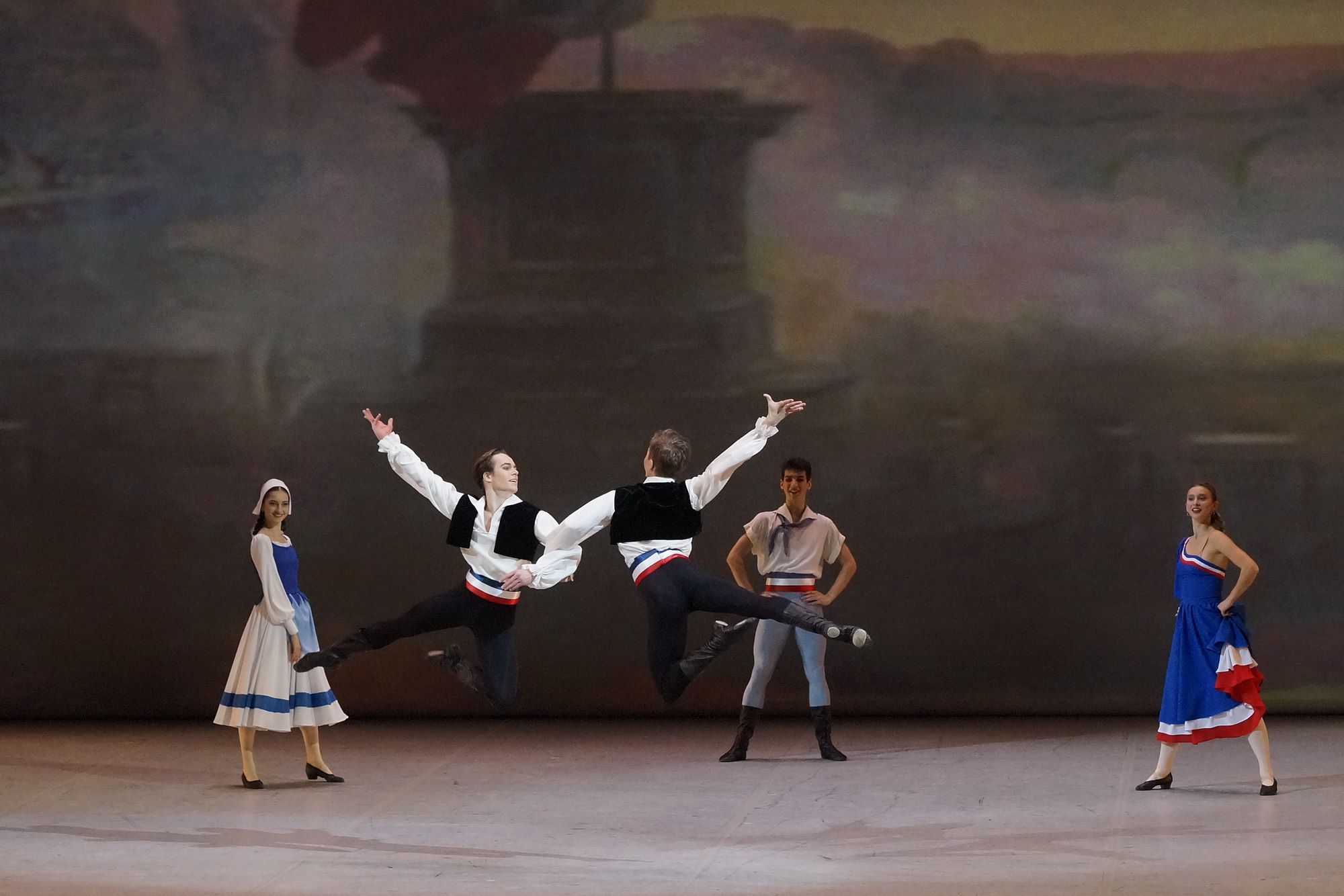 В первом и втором отделении: «Классическая симфония», I часть, музыка С. Прокофьева, хореография Л. Лавровского, адажио из балета А. Хачатуряна «Спартак», хореография Ю. Григоровича, фрагменты из произведений классического наследия (в их числе балеты «Баядерка», «Спящая красавица», «Дон Кихот», «Раймонда», «Пламя Парижа» и др.), в третьем отделении – балет «Мусагет» на музыку И.-С. Баха, П. Чайковского, хореография Бориса Эйфмана.