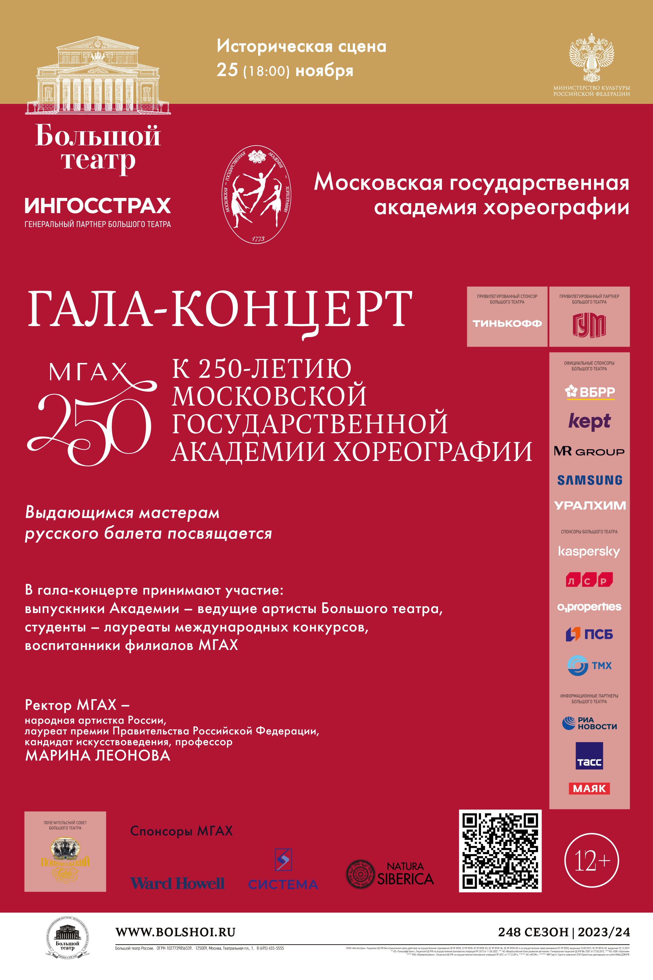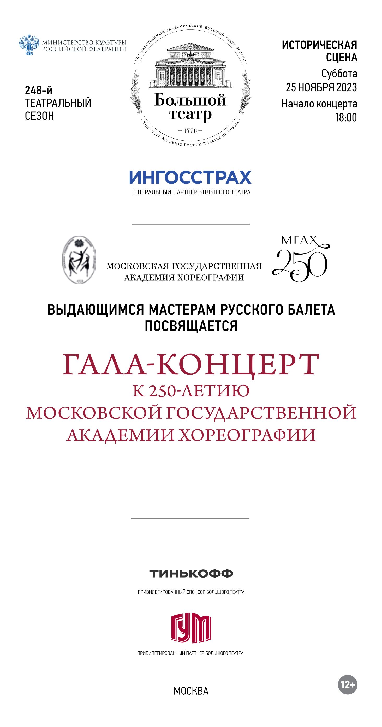 Гала-концерт к 250-летию Московской государственной академии хореографии Историческая сцена Большого театра России, 25 ноября 2023 года