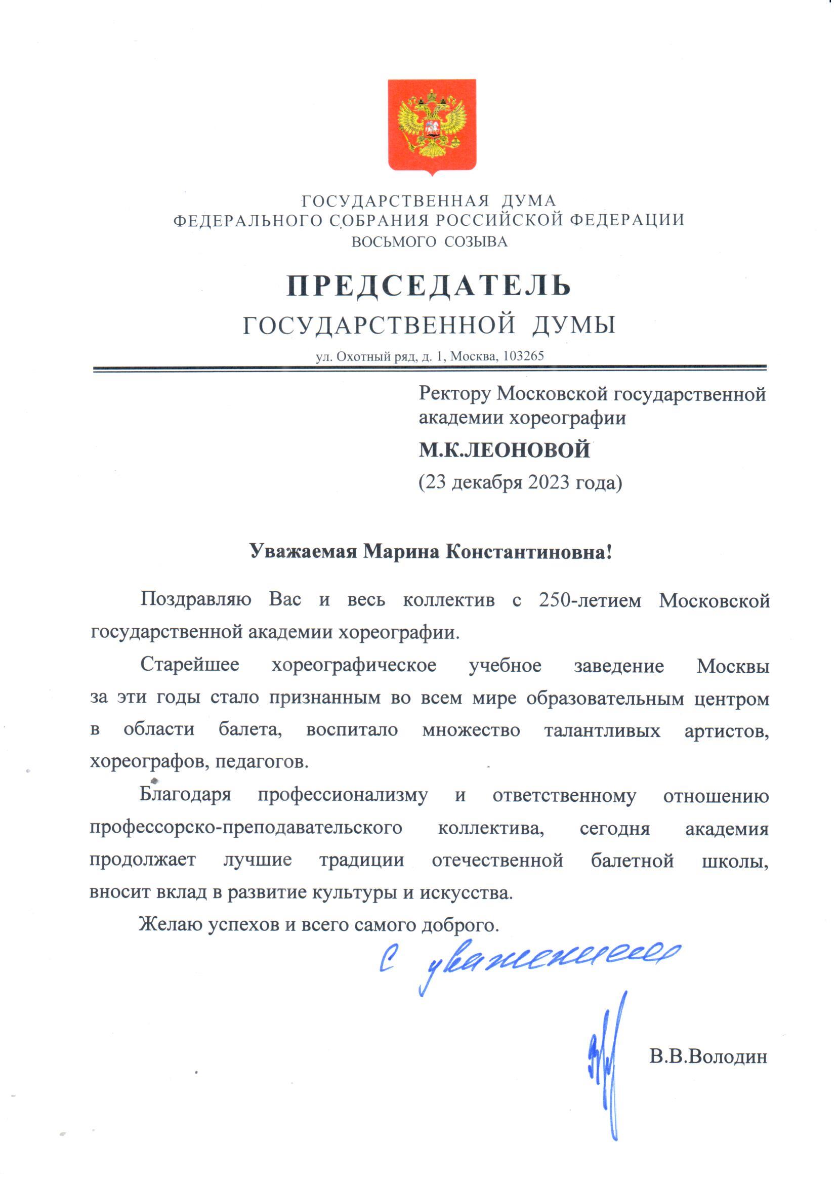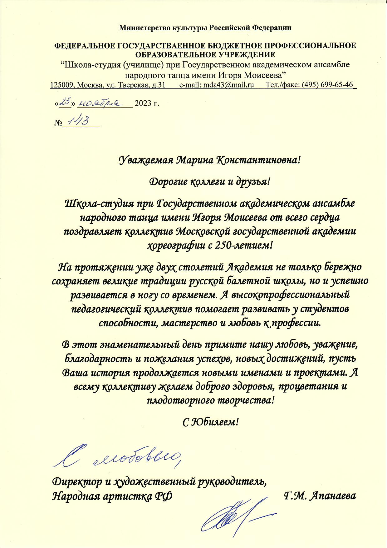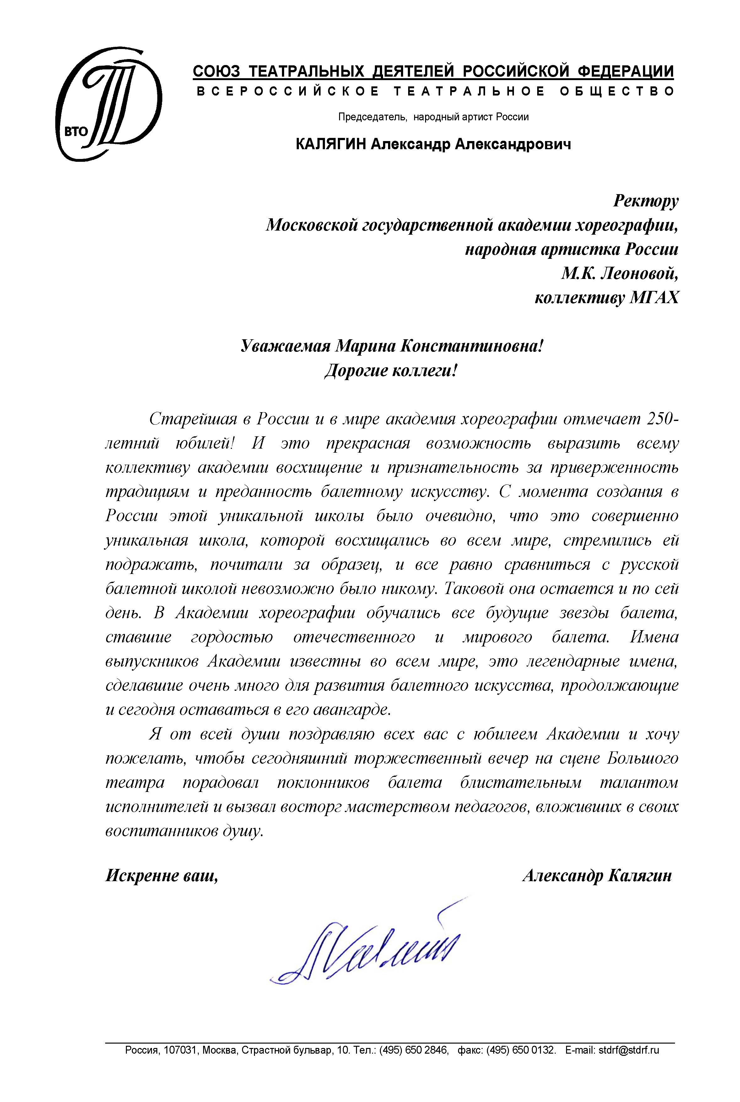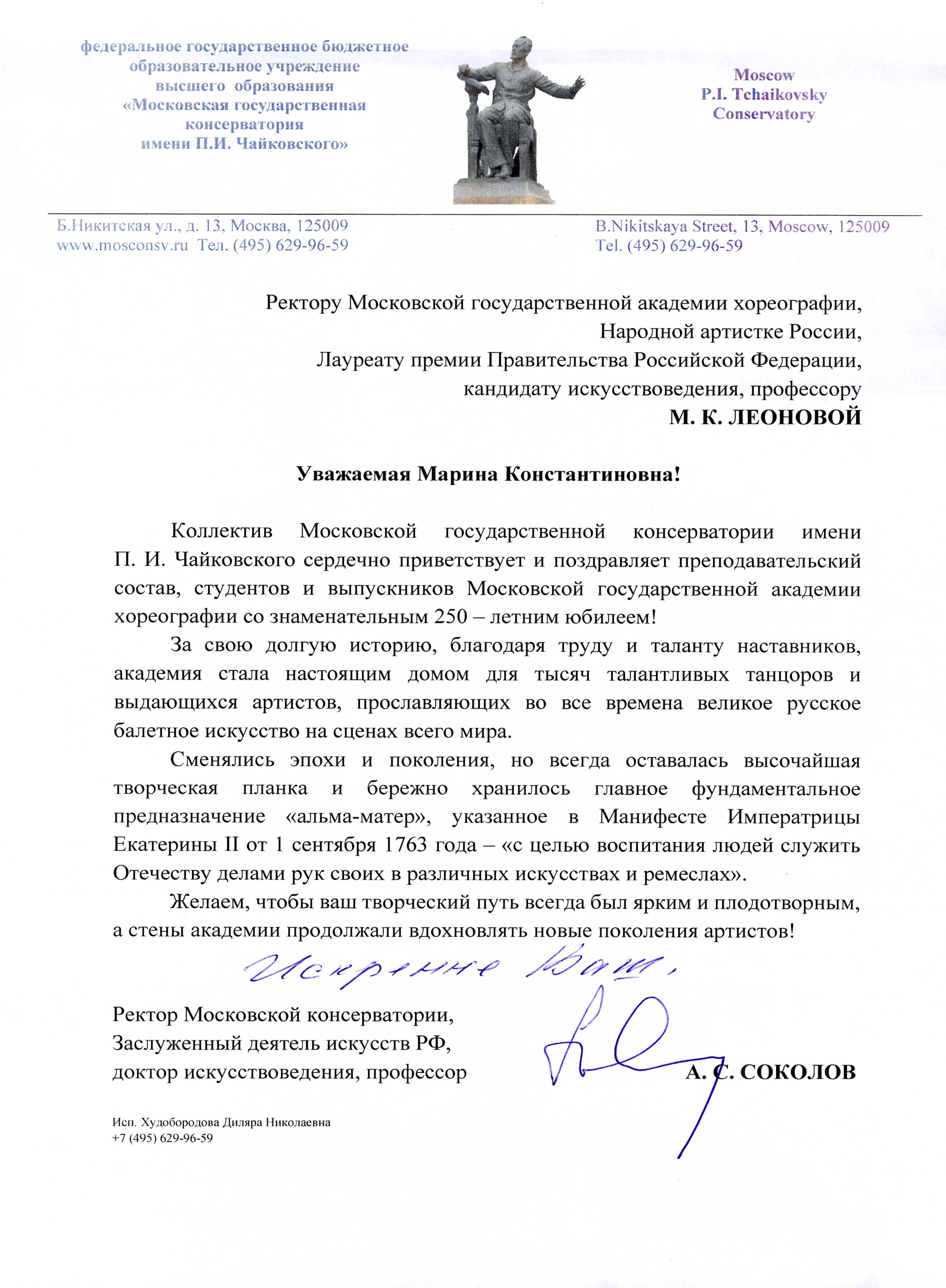 Поздравления для Московской государственной академии хореографии с 250-летним юбилеем
