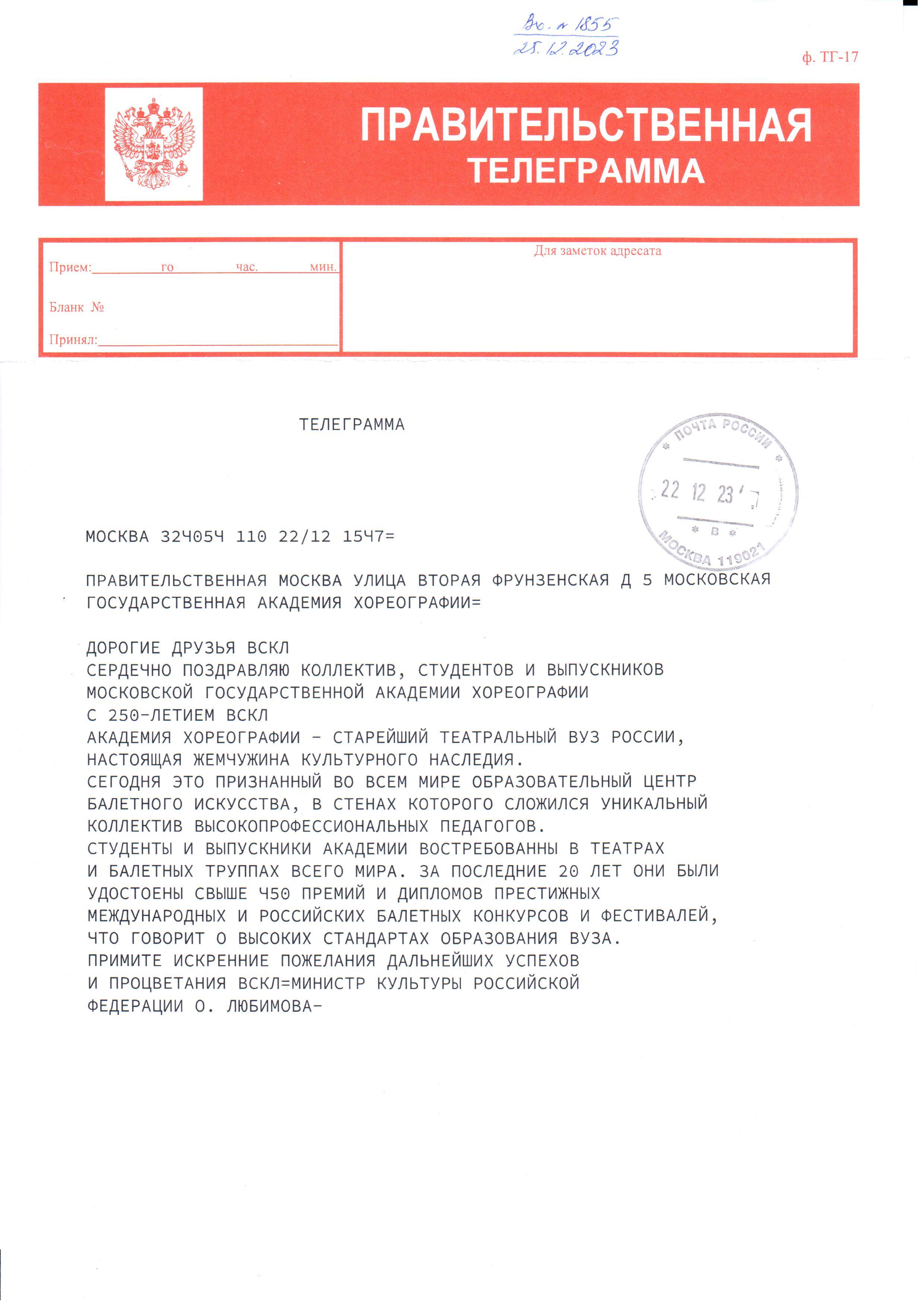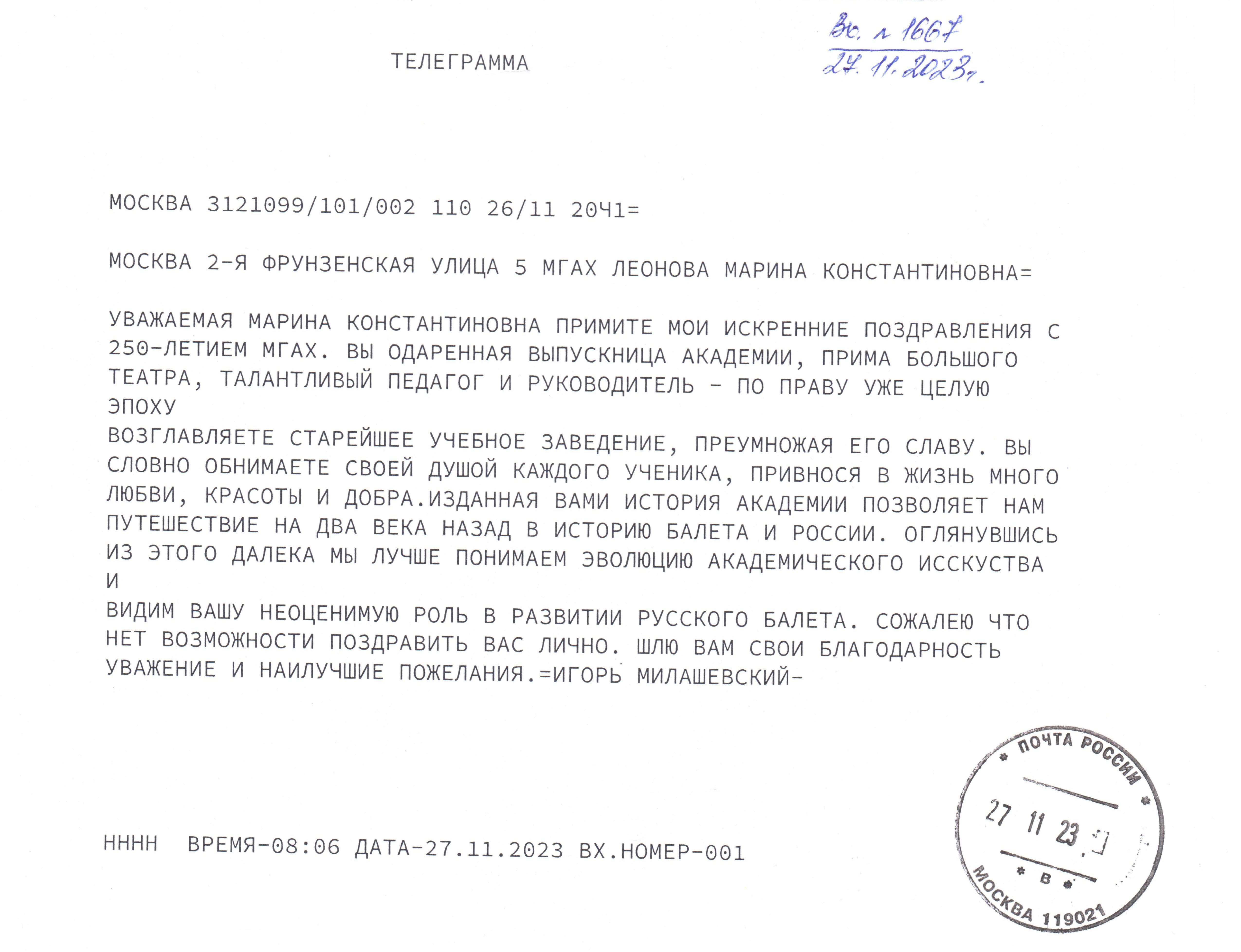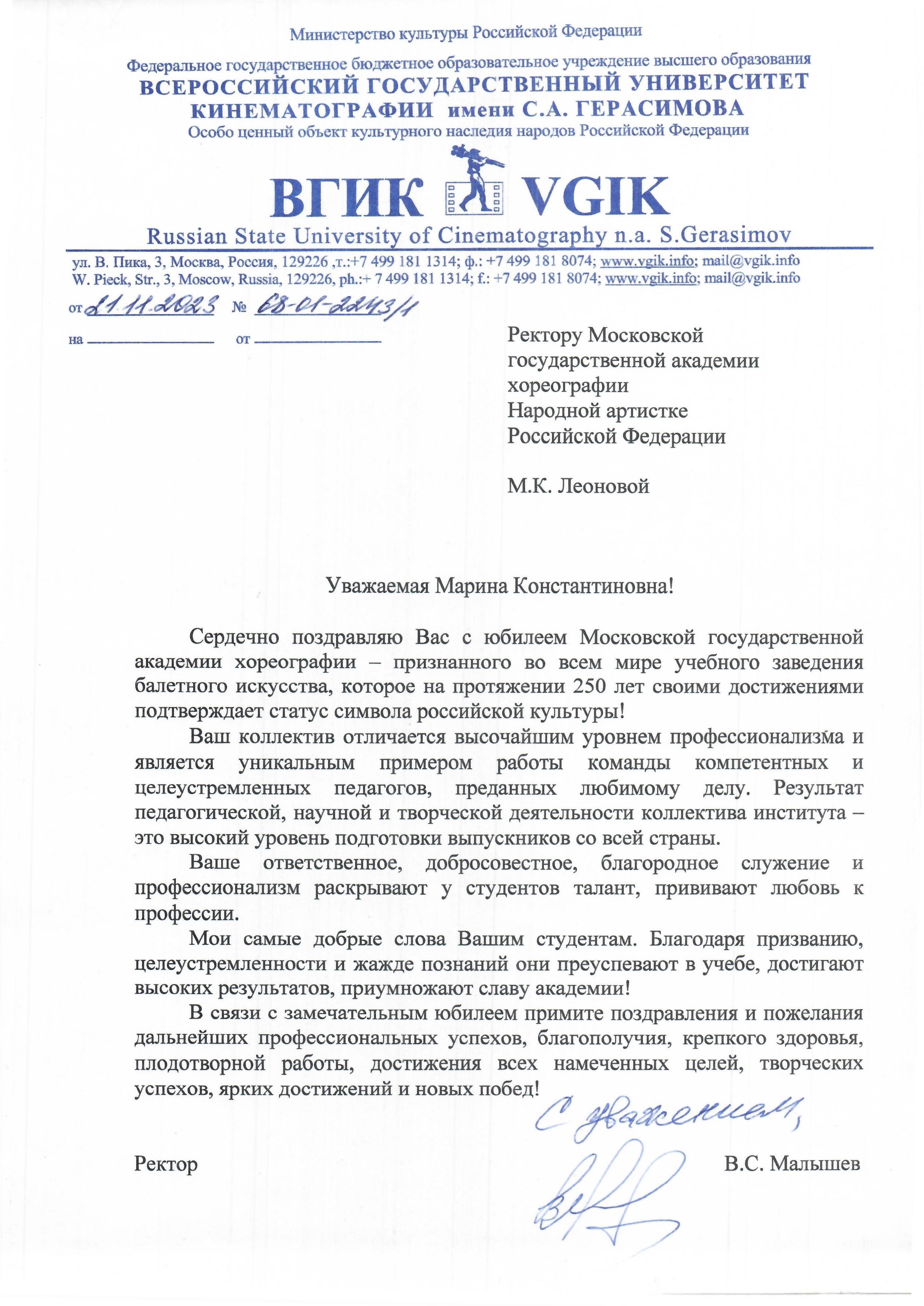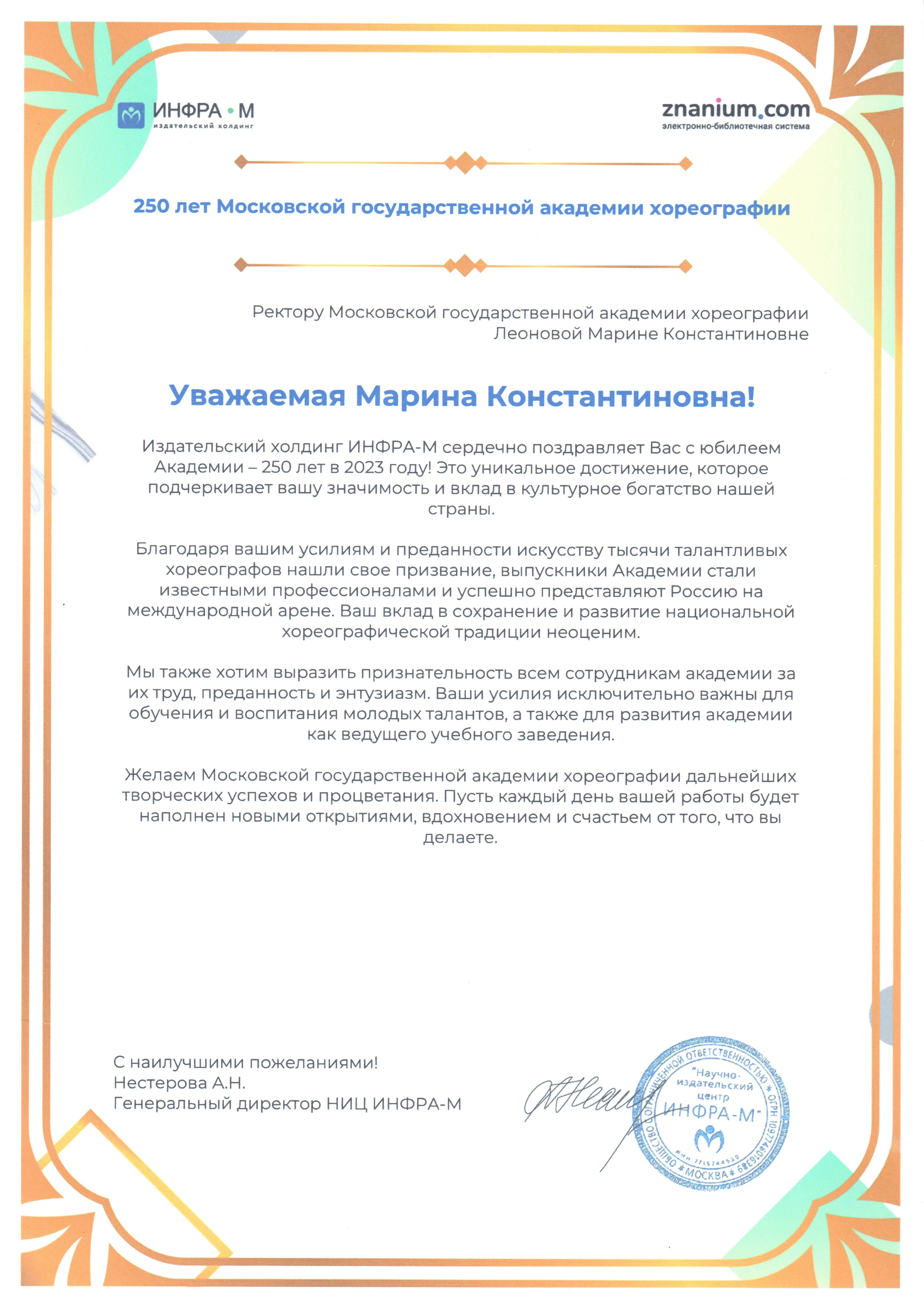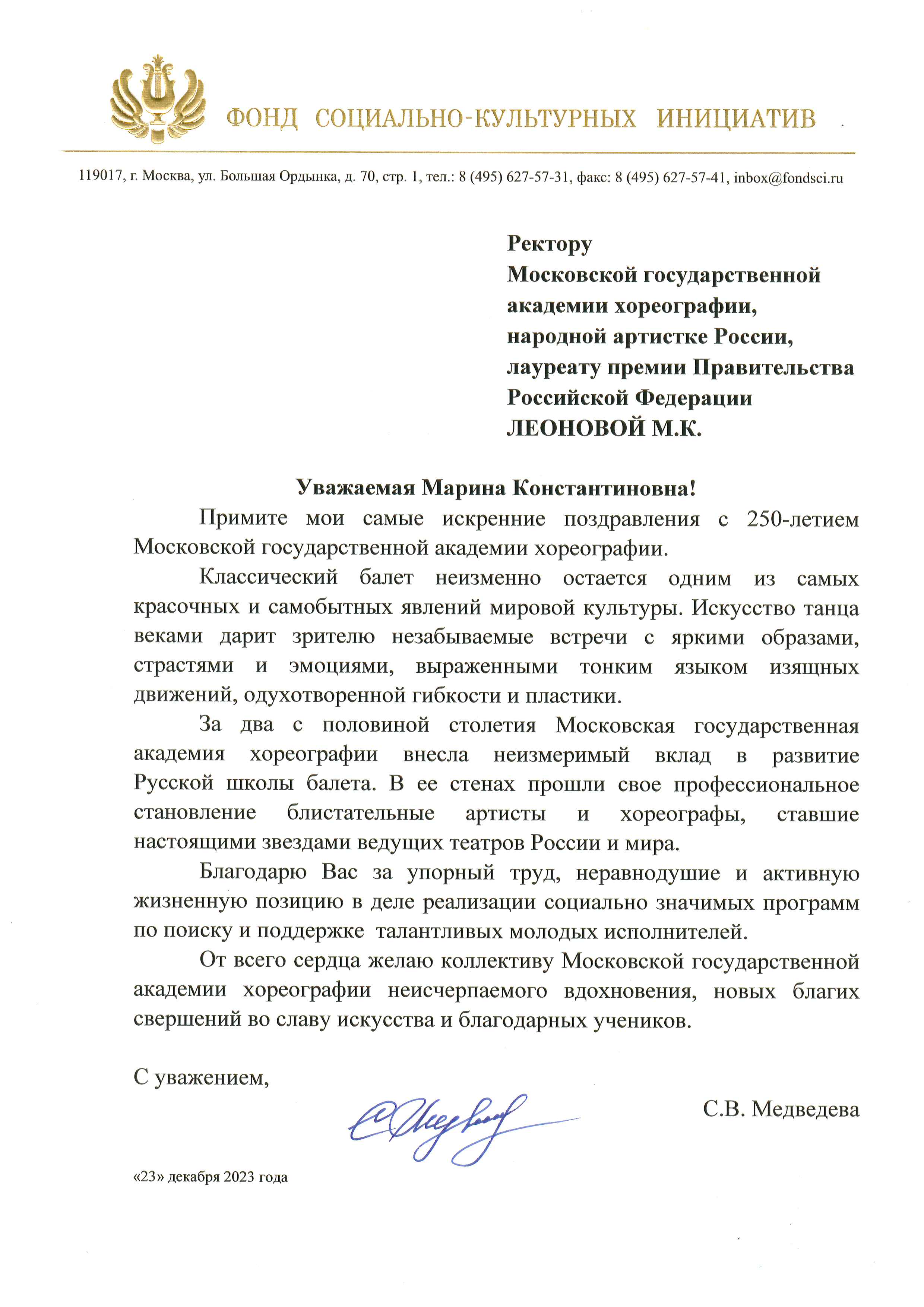 Поздравления для Московской государственной академии хореографии с 250-летним юбилеем