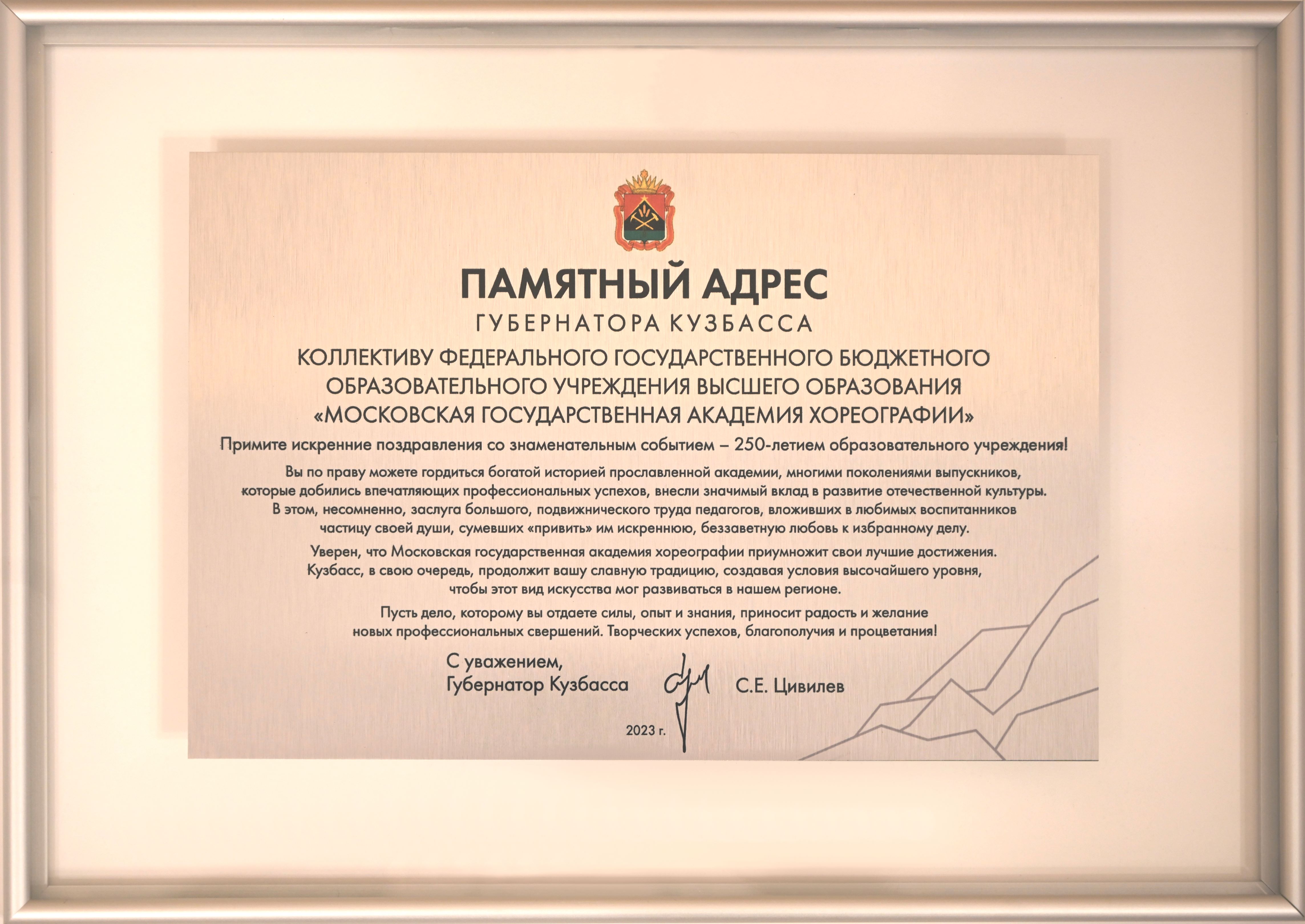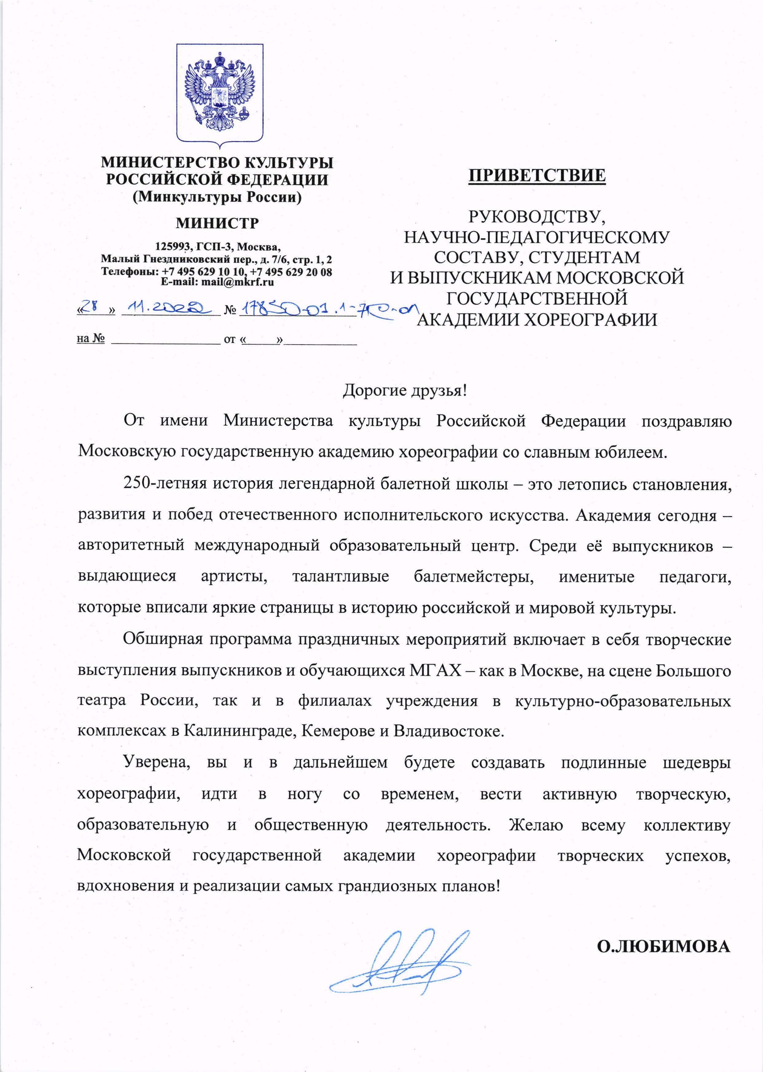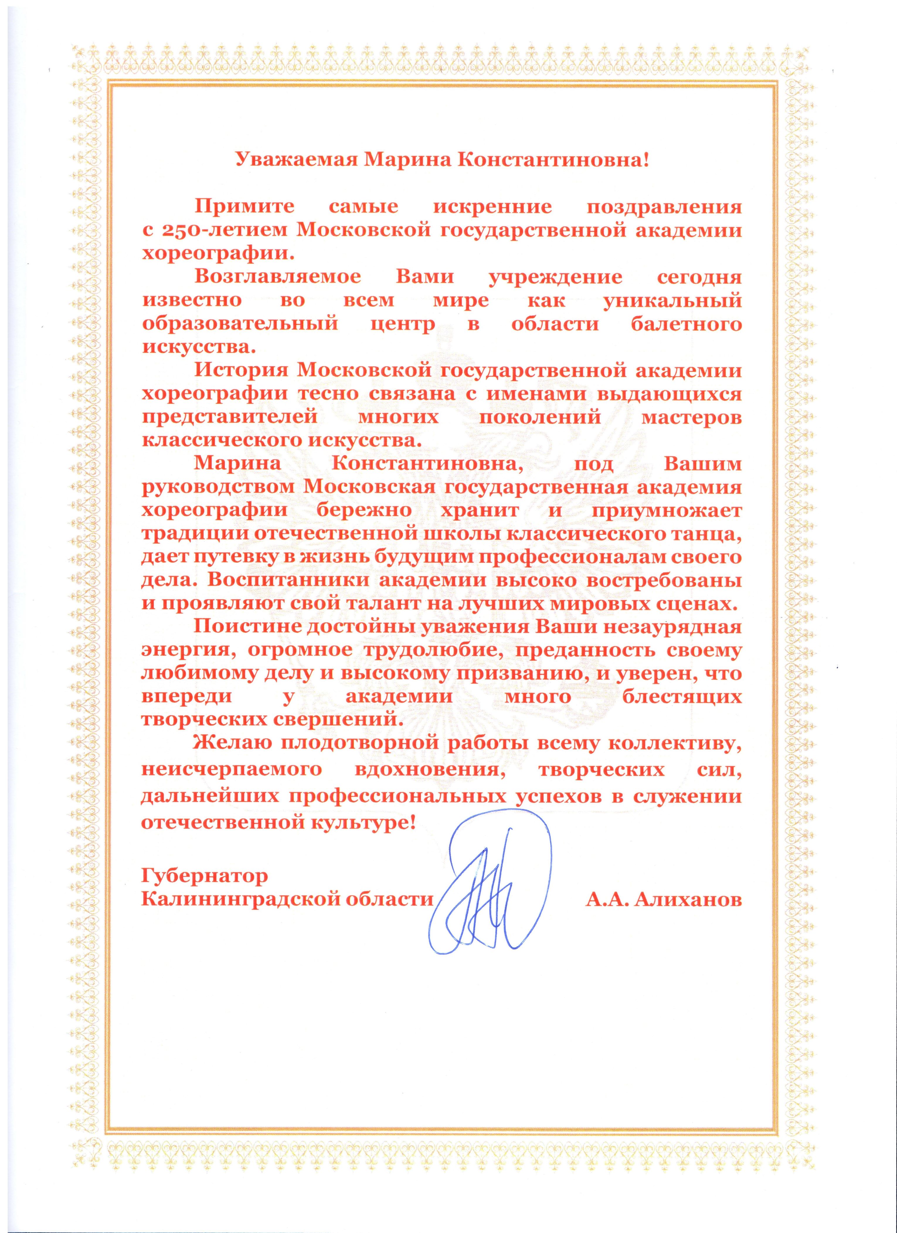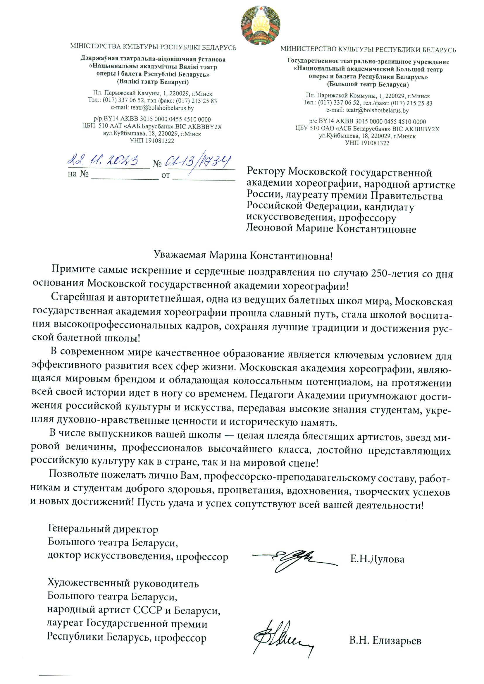 Поздравления для Московской государственной академии хореографии с 250-летним юбилеем