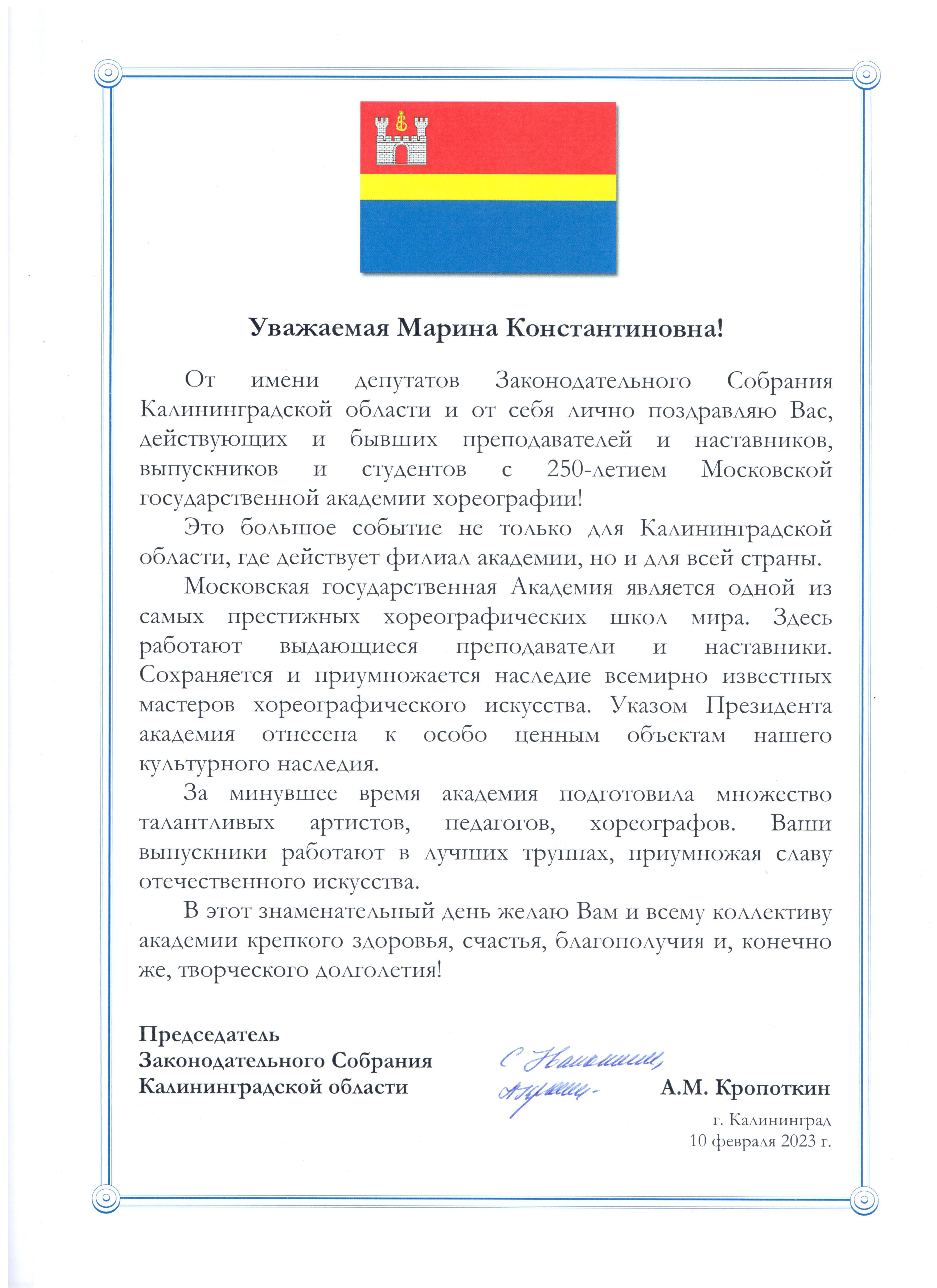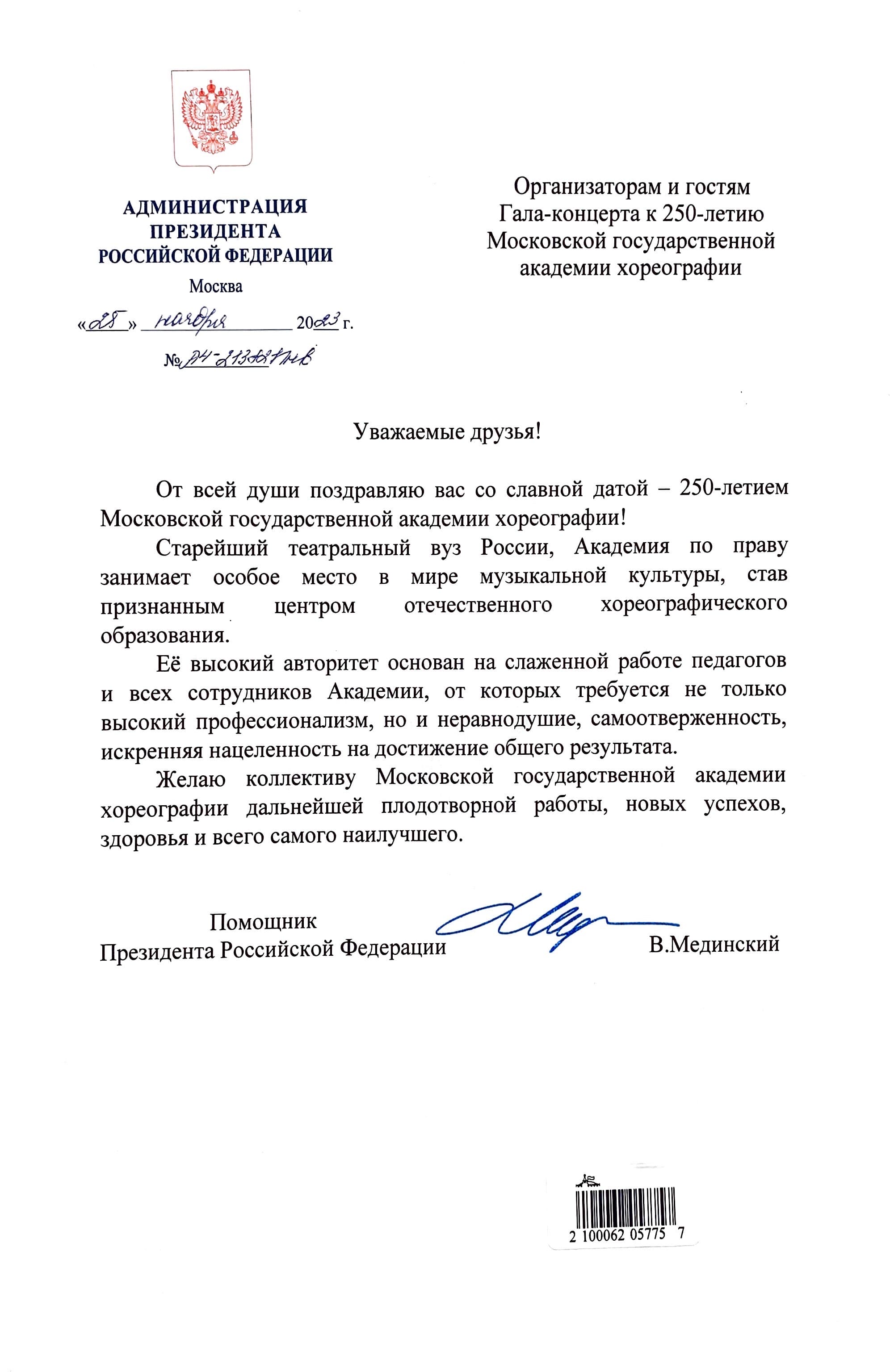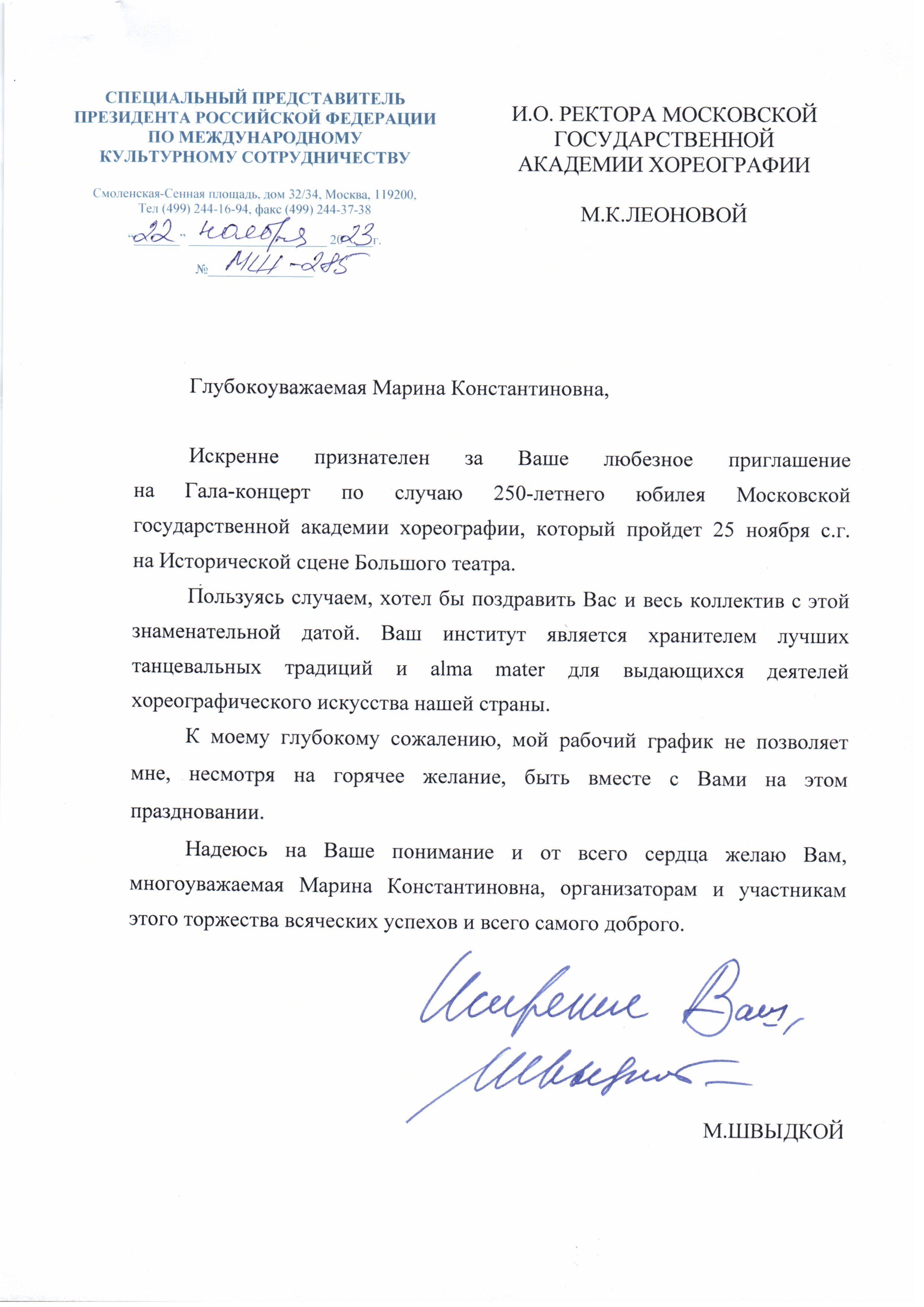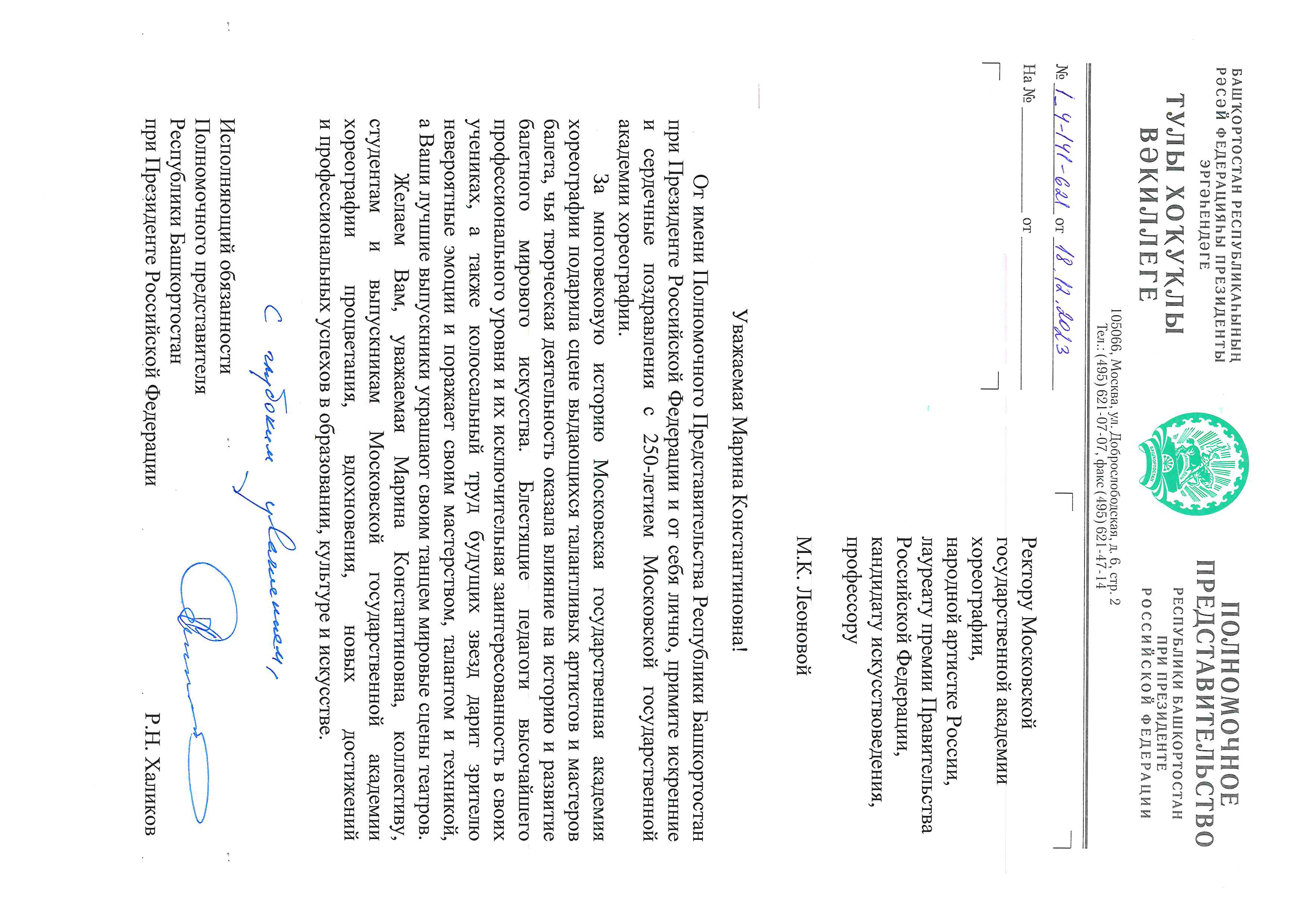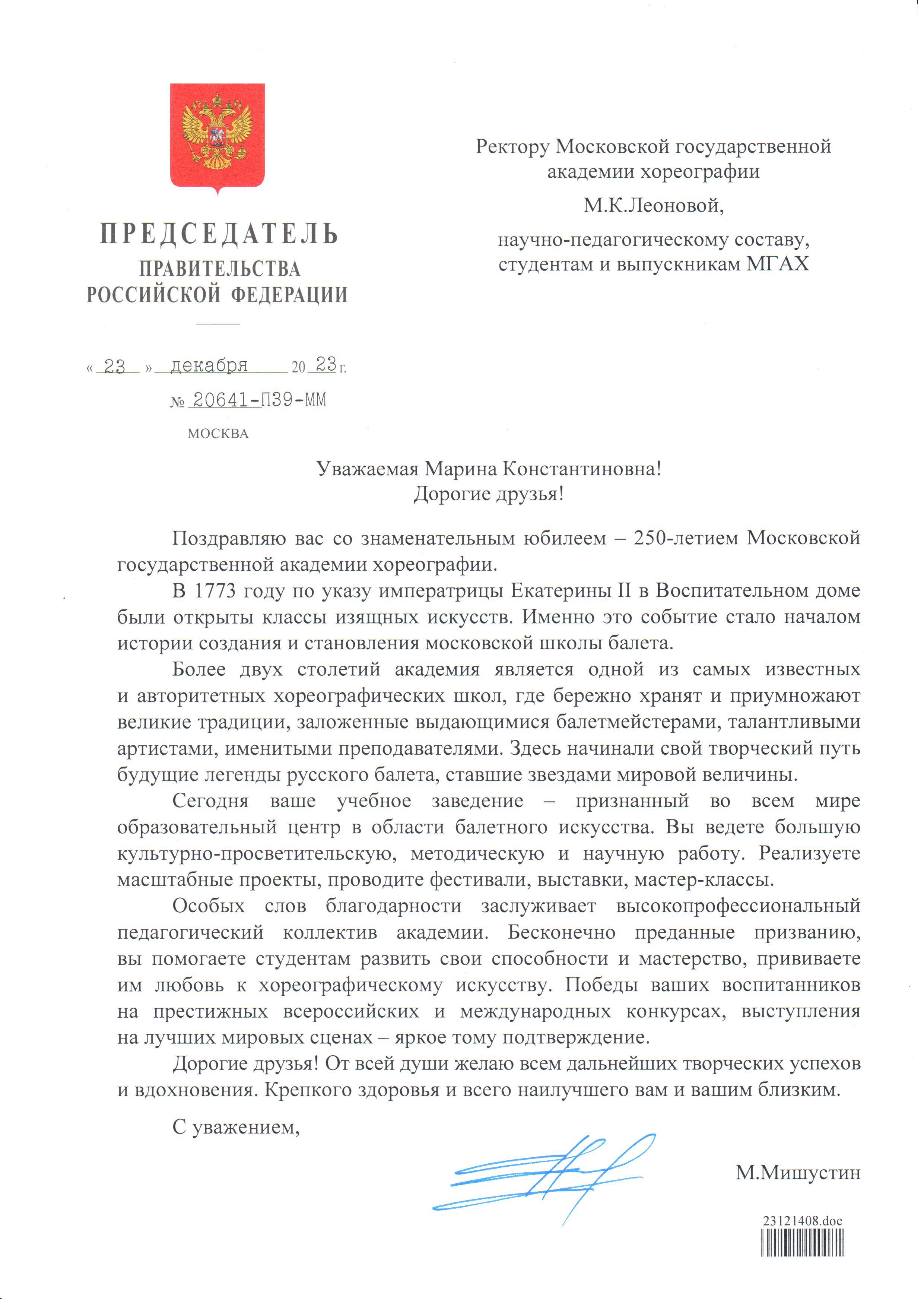 Поздравления для Московской государственной академии хореографии с 250-летним юбилеем
