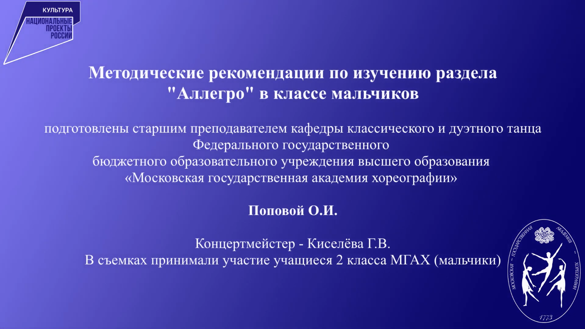 Методические рекомендации «Классический танец» - «Allegro» — Попова О.И., старший преподаватель кафедры классического и дуэтного танца